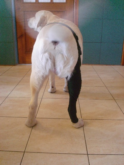 W nadzwyczajnych przypadkach, gdy pies ma poważną ranę i jest potrzeba żeby pończocha była bardziej przepuszczalna, polecamy pończochę siatkową.